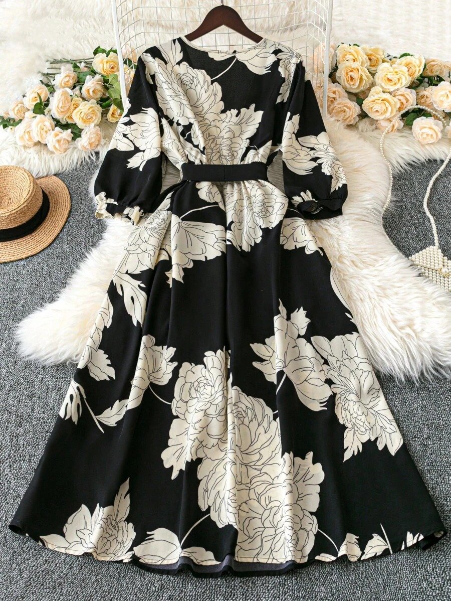 Rometta Court Retro Plus Size Solid Color Print Cross Neck Short Sleeve Flowy Dress Wedding Day Wedding Guest