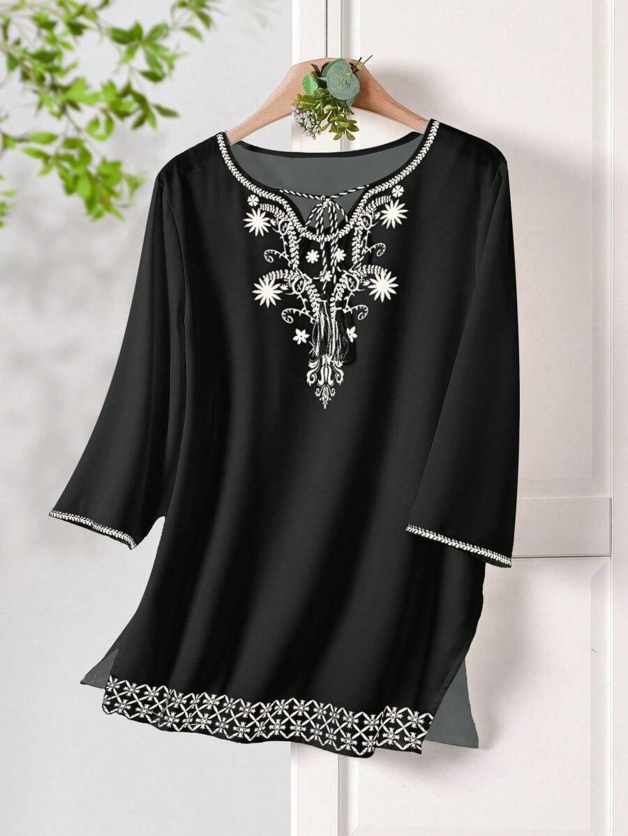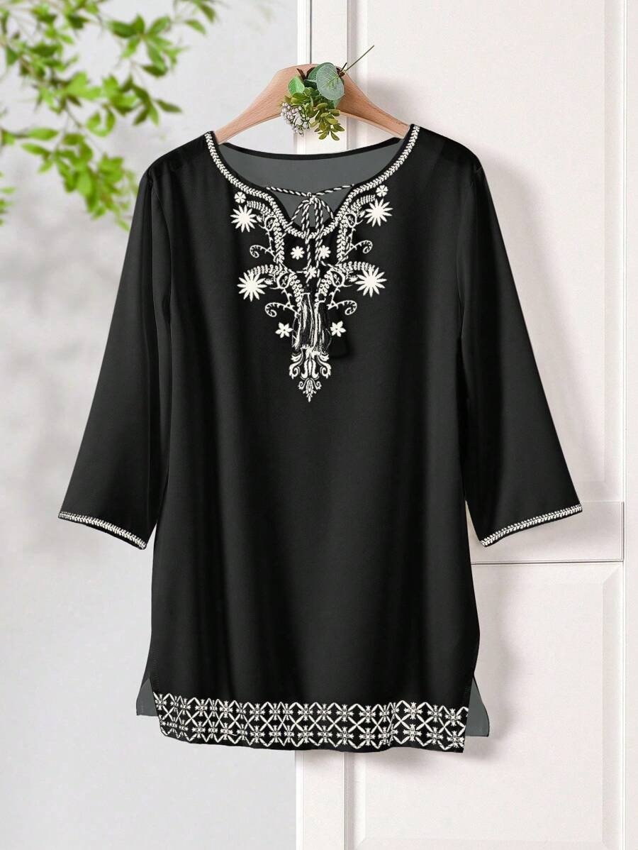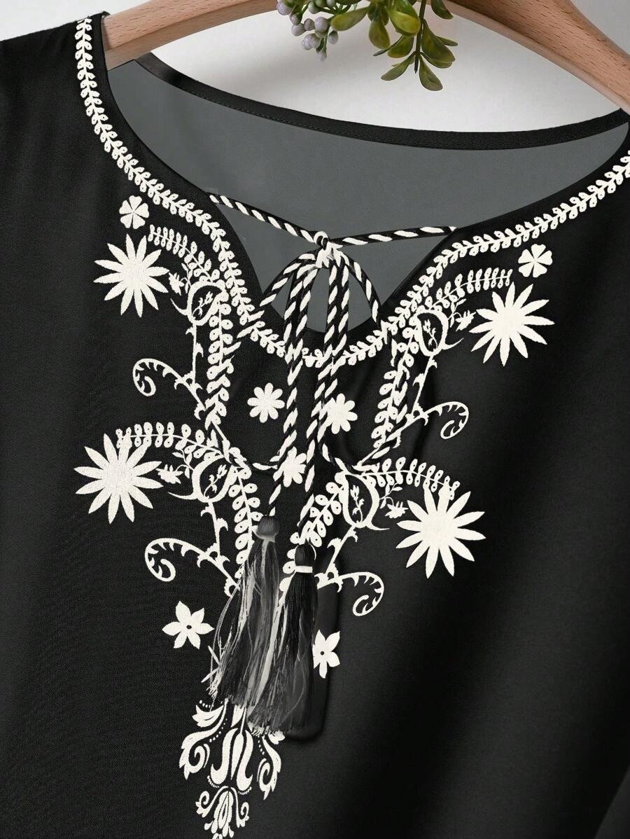 Be the first to review “Rusticease Women Casual Floral Print Knot Collar Blouse, For Summer”
