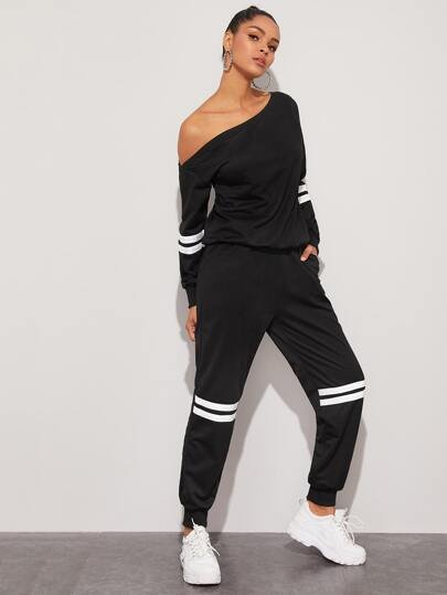 SHEIN 2 Piece Casual One Shoulder Pajama Set Long Sleeve Top Joggers Sweatpants Loungewear