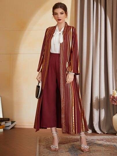 SHEIN 2 Piece Set Pocket Longline Coat & Pajama Pant
