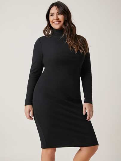 SHEIN BASICS Plus Cotton High Neck Bodycon Dress