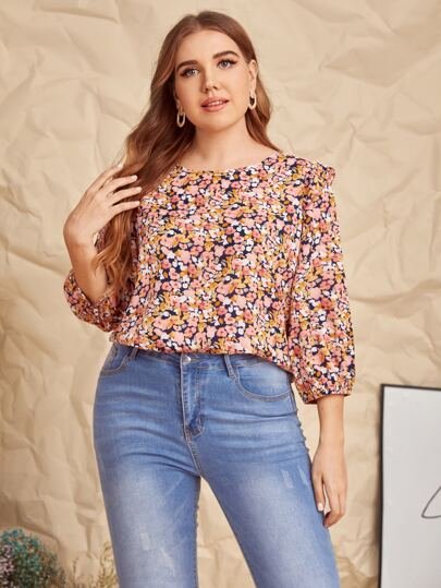SHEIN Clasi Women’s Plus Size All Over Floral Printed Blouse