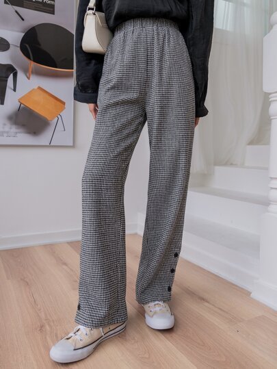 SHEIN DAZY Houndstooth Print Button Down Trouser