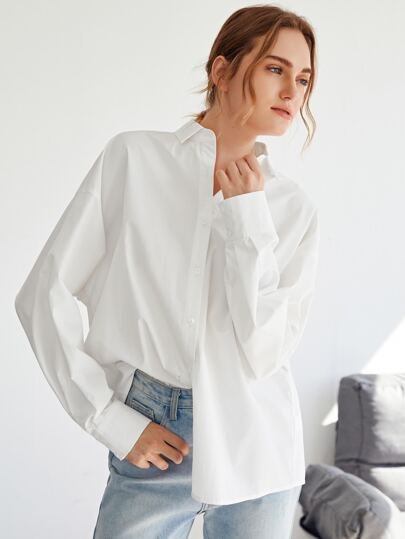 SHEIN Drop Shoulder Single Breasted Blouse