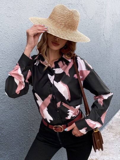 SHEIN Elegant Printed Long Sleeve Casual Shirt