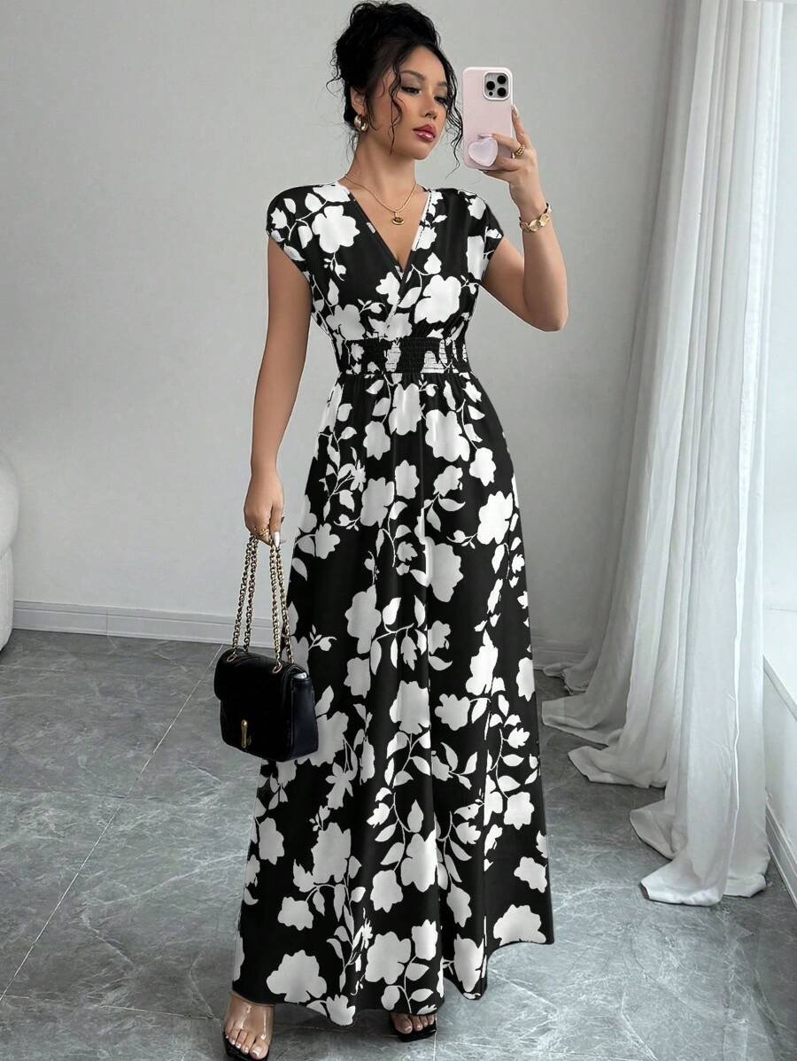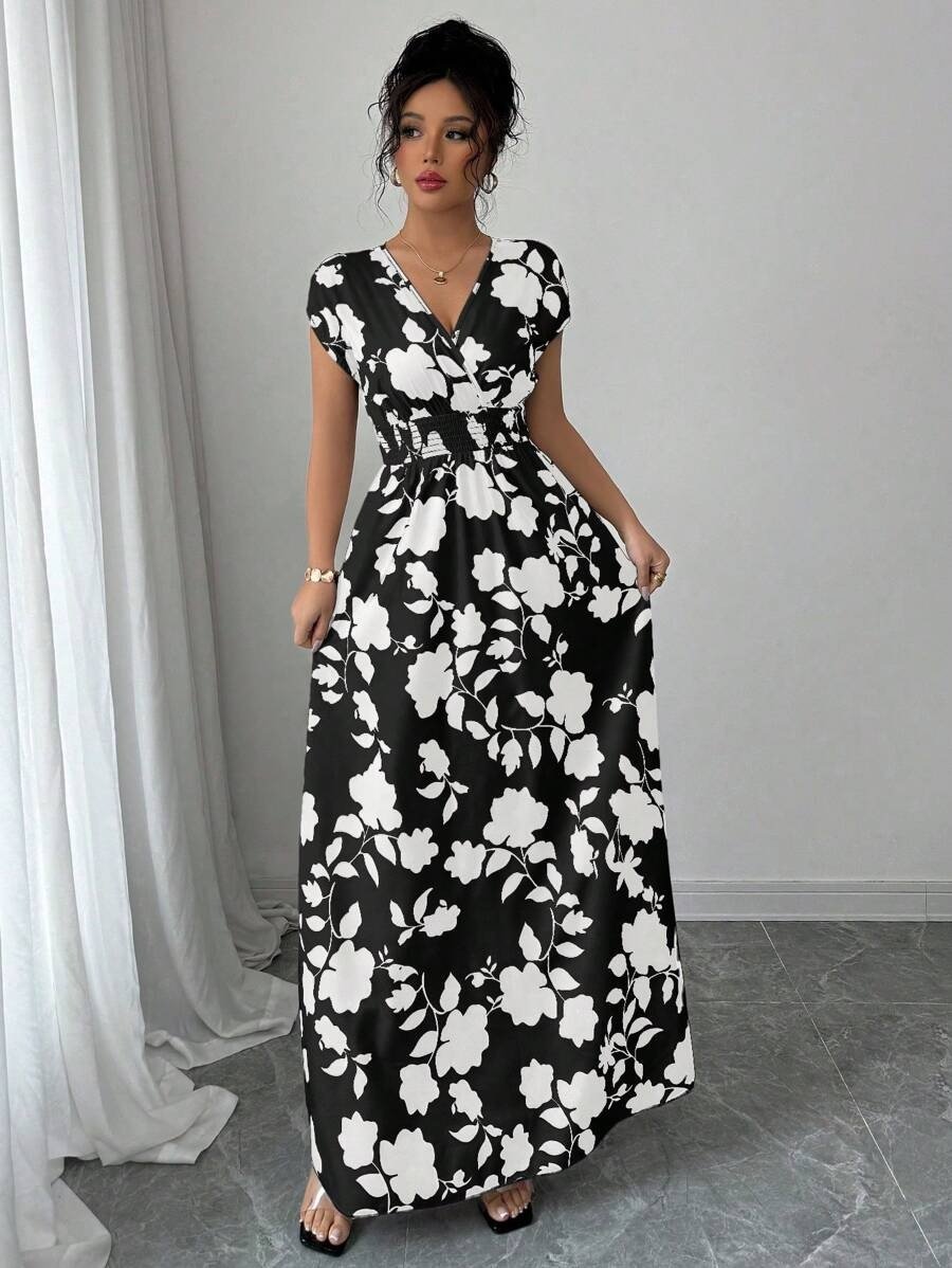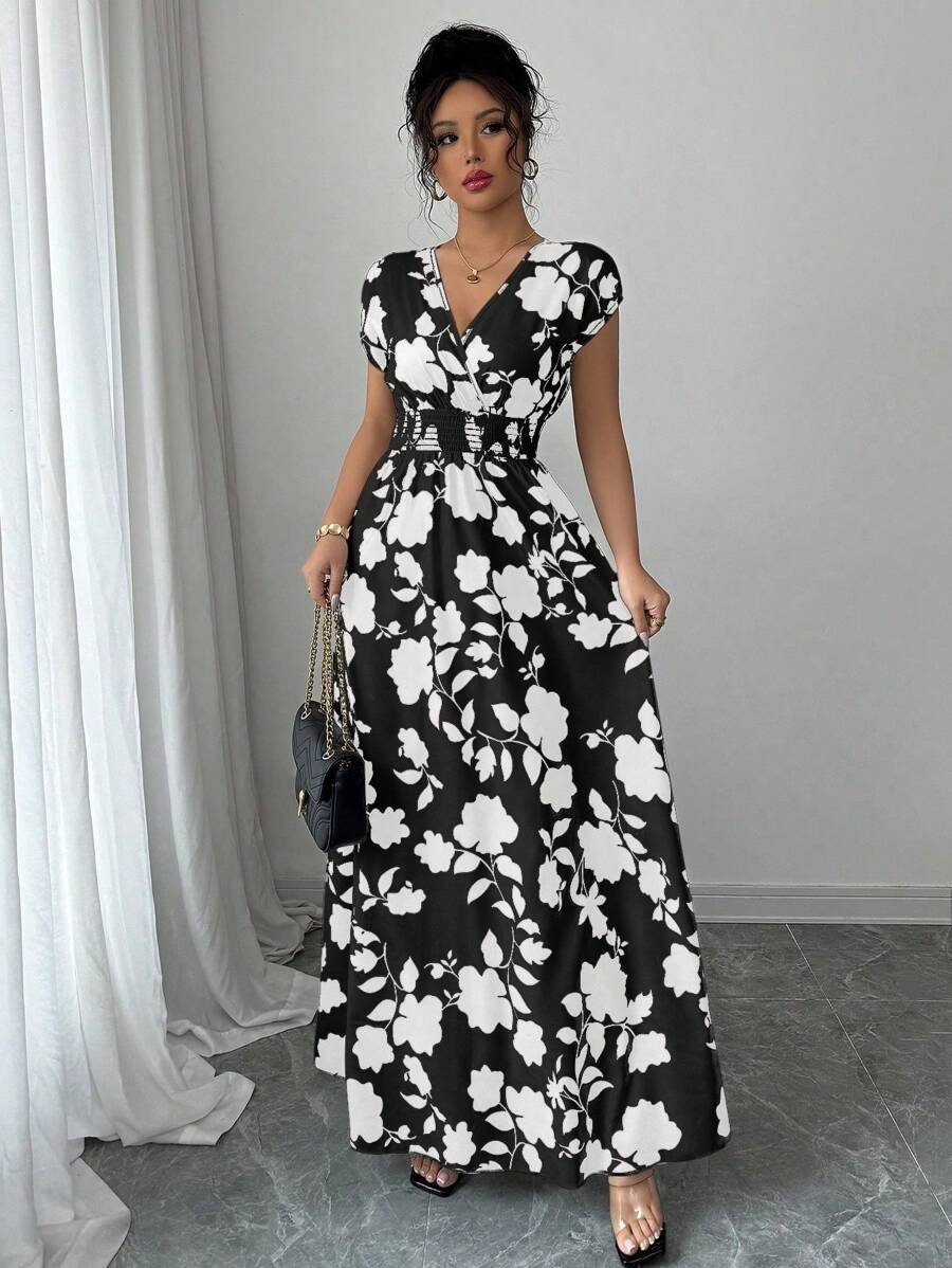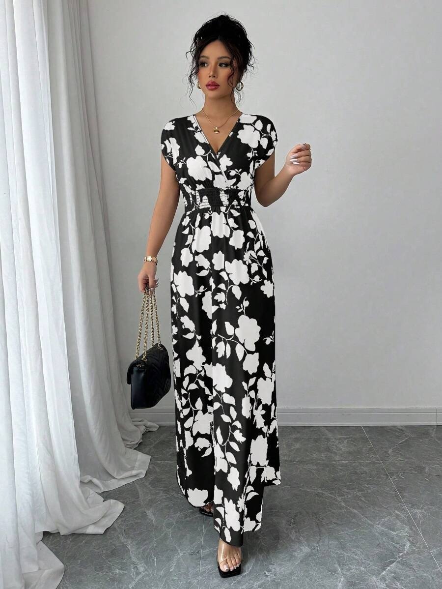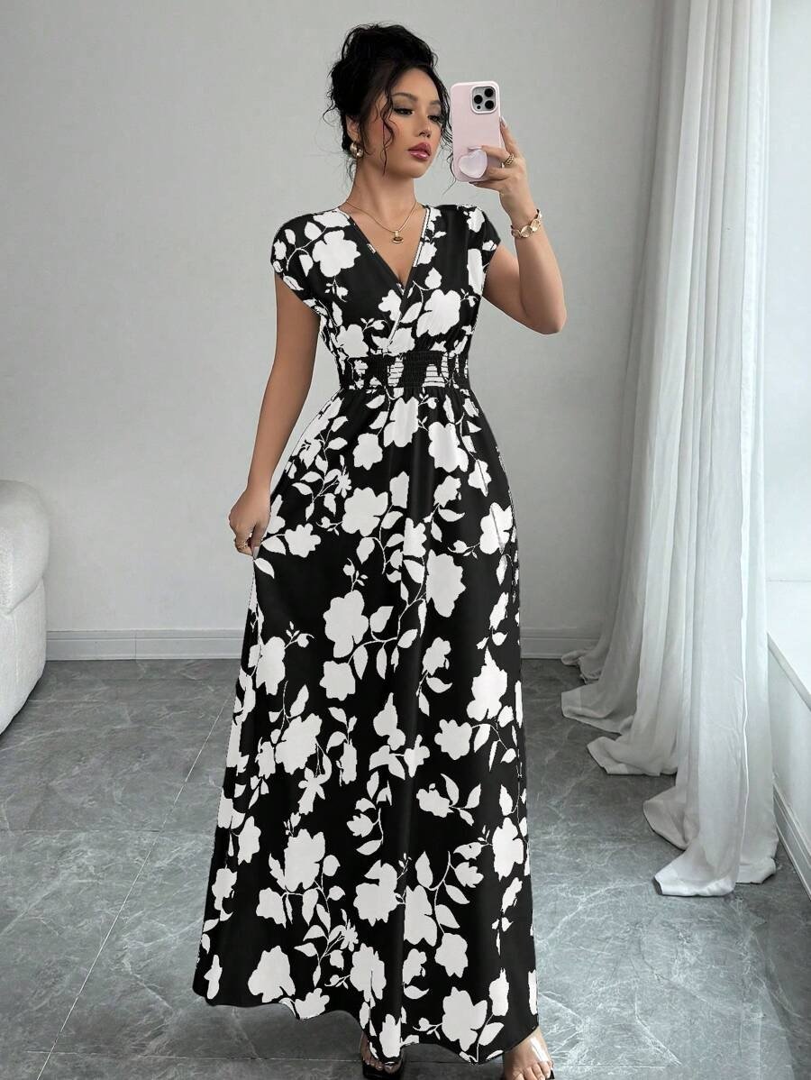 SHEIN Elenzga Elegant Floral All Over Print Dress, Suitable For Commuting