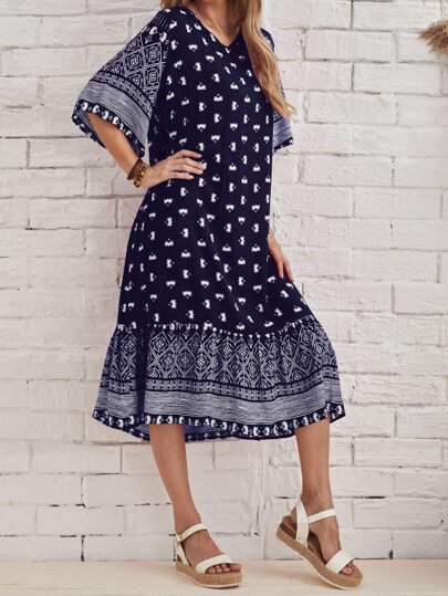 SHEIN EMERY ROSE Floral Flounce Sleeve Smock Dress