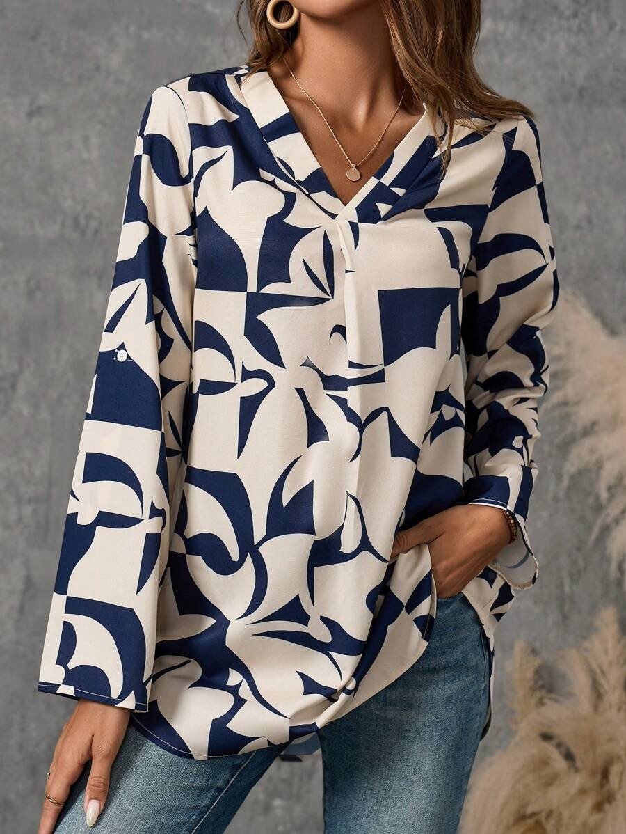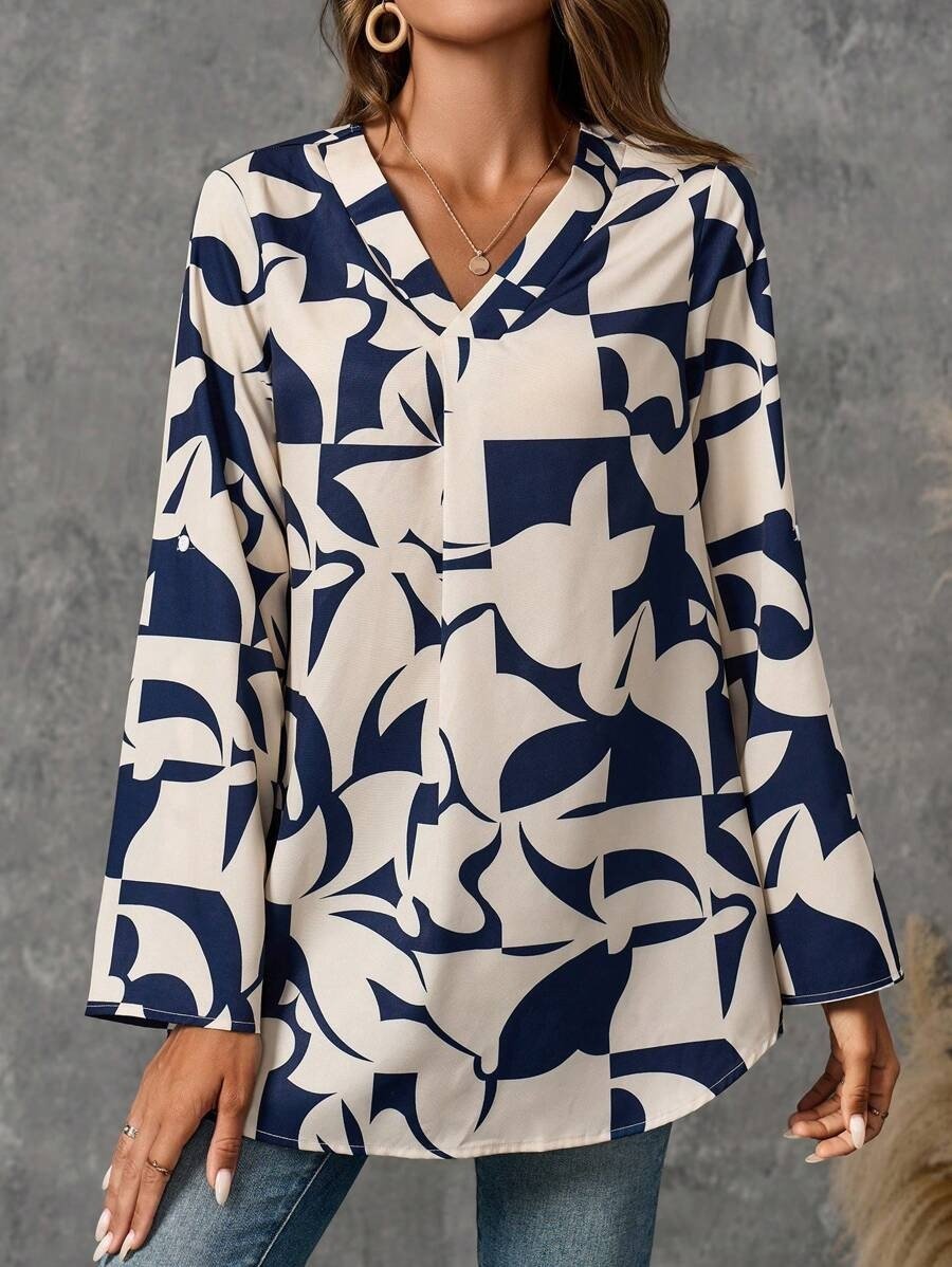 SHEIN EMERY ROSE Women’s Long Sleeve Shirt With Fall Geometric Pattern Print