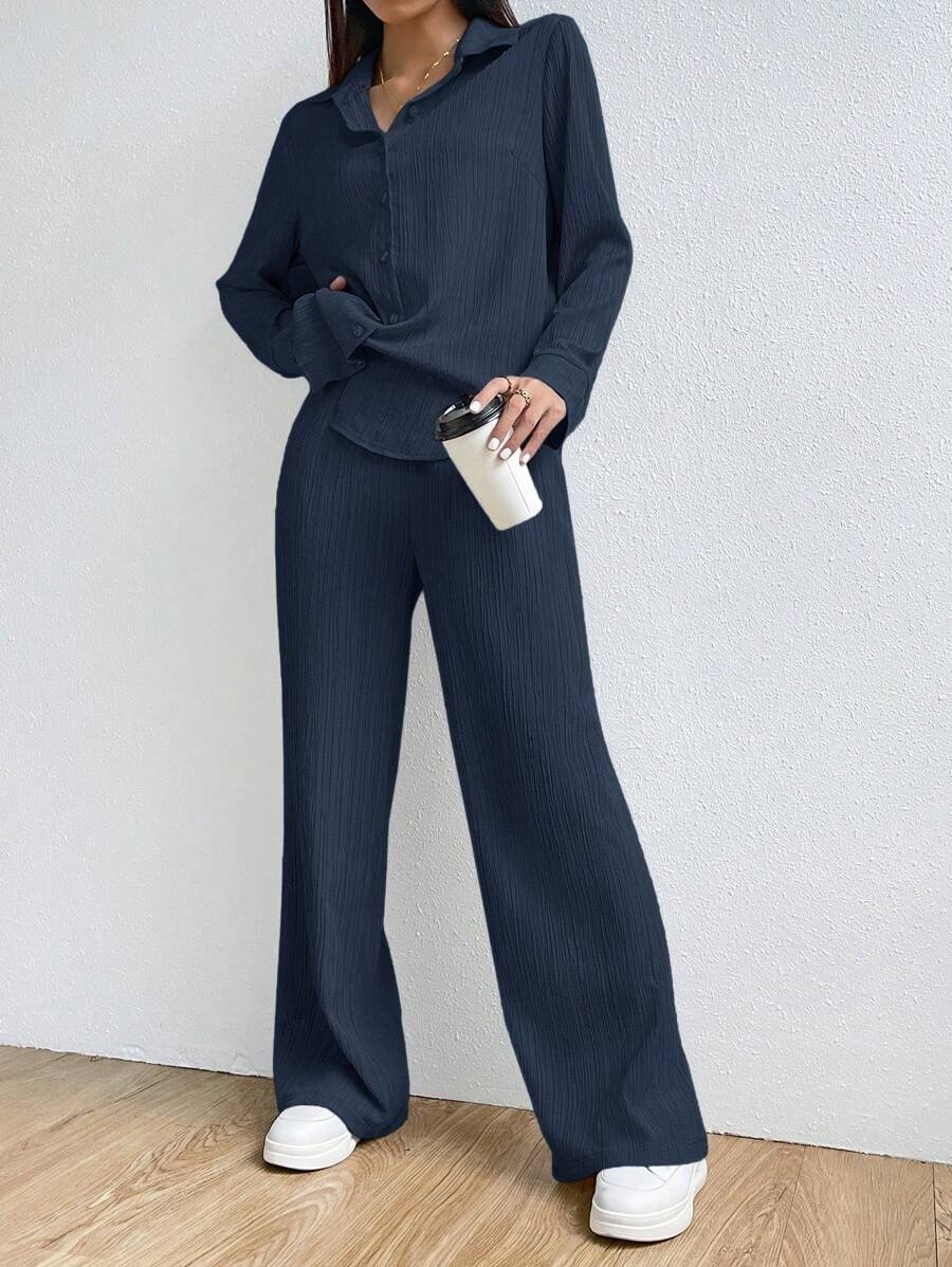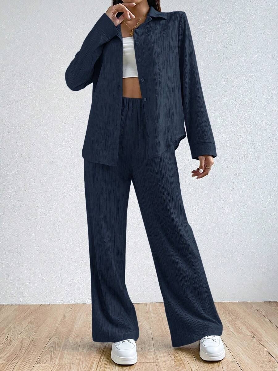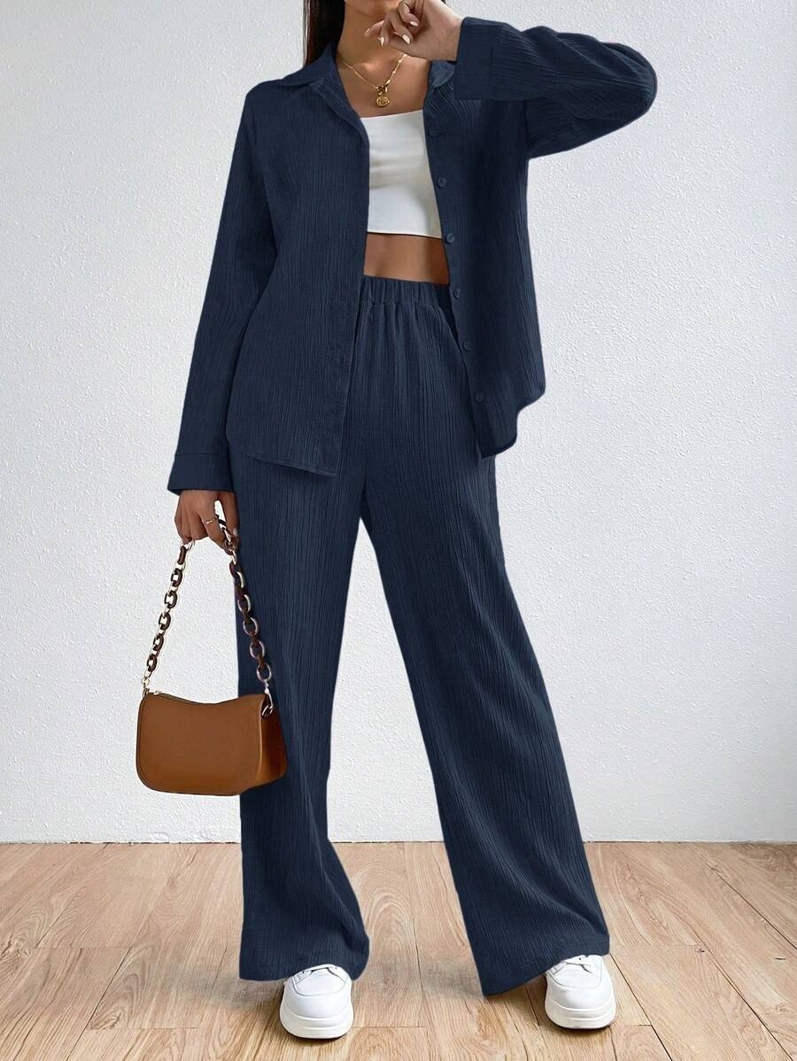 SHEIN EZwear Ladies’ Solid Color Simple Daily Wear Shirt And Pants Two-Piece Suit