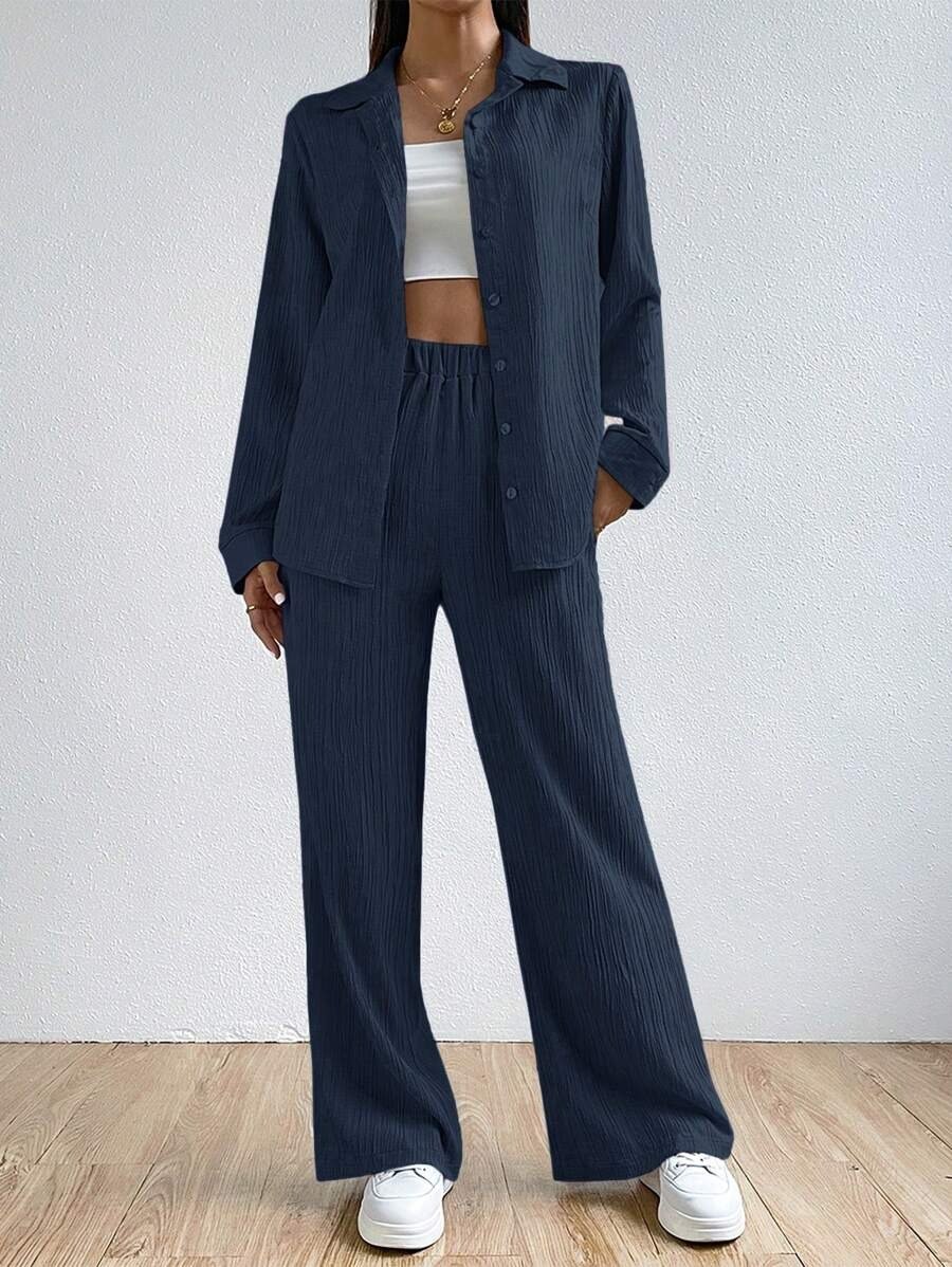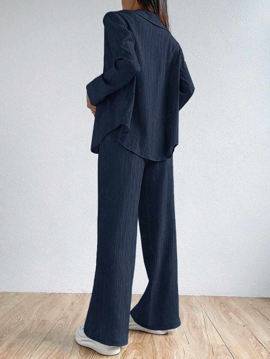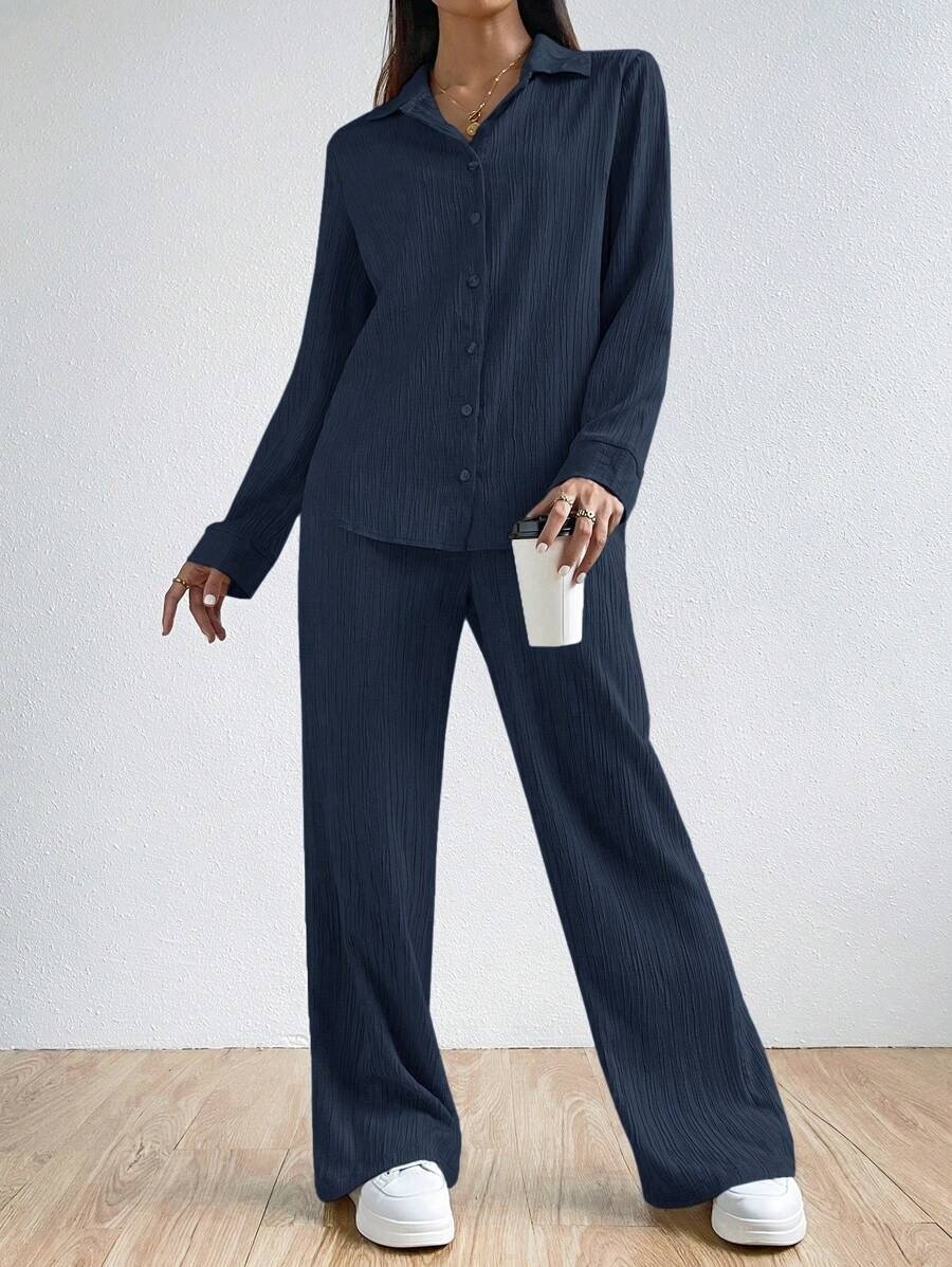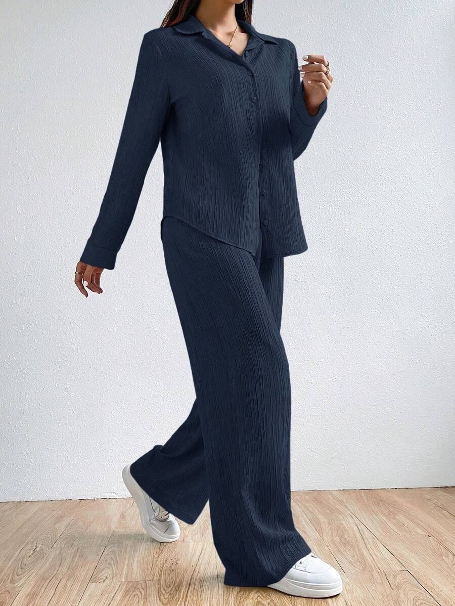 SHEIN EZwear Ladies’ Solid Color Simple Daily Wear Shirt And Pants Two-Piece Suit