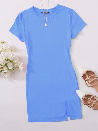 SHEIN EZwear Solid Split Hem T-Shirt Dress