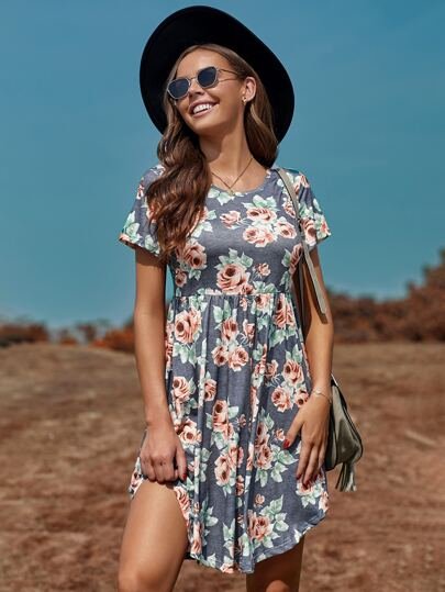 SHEIN Floral Printed Short Sleeve Dress