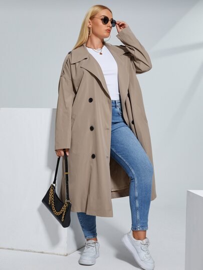 SHEIN Franclia Plus Lapel Neck Double Breasted Trench Coat
