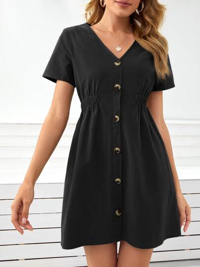 SHEIN Frenchy Button Front Solid Dress