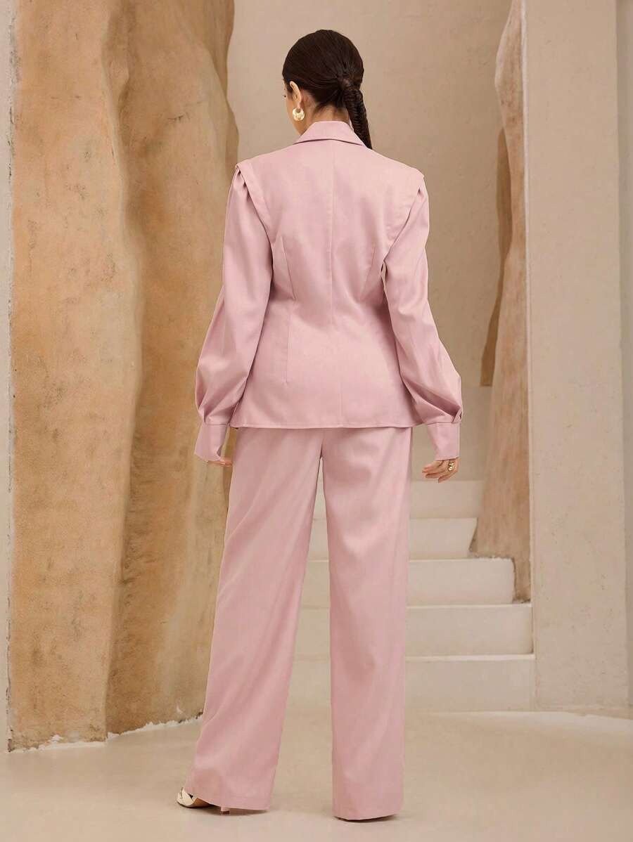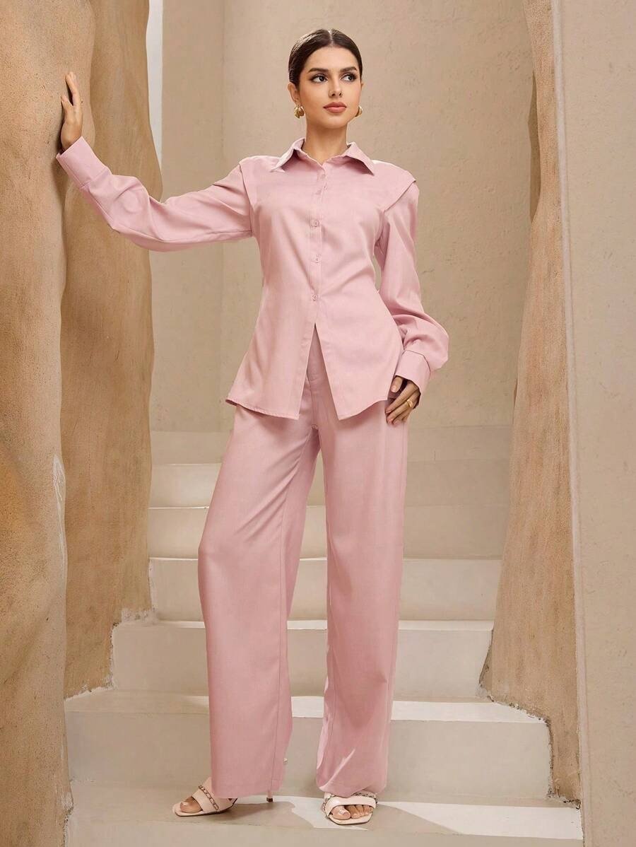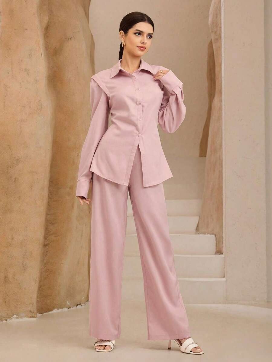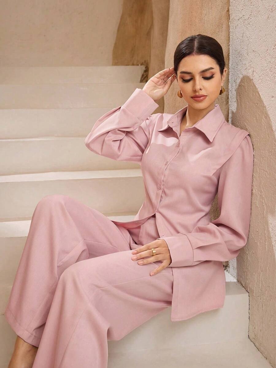 SHEIN Graceveil 2pcs Set Women’s Woven Plain Fitted Long Sleeve Top