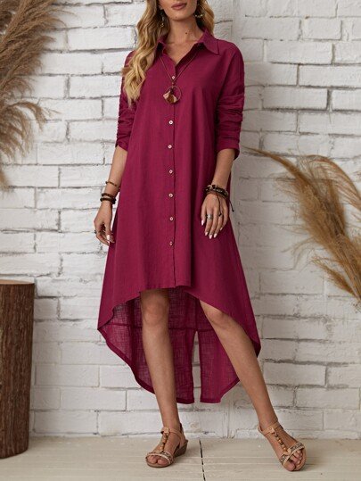 SHEIN High Low Split Back Shirt Dress