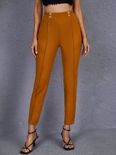 SHEIN High Waist Double Breasted Seam Detail Skinny Pants