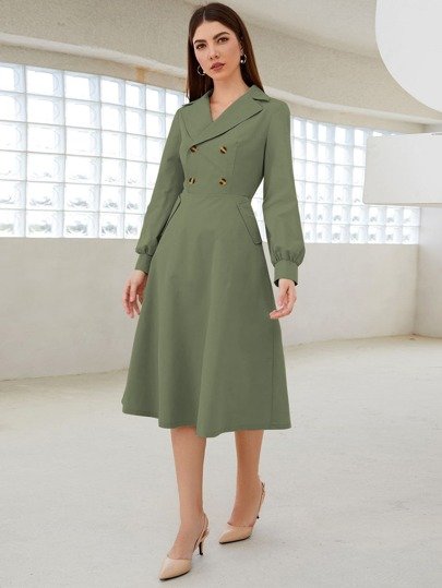 SHEIN Lapel Collar Double Button Shirt Dress
