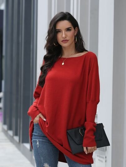 SHEIN Leg-of-mutton Longline Oversized Sweater