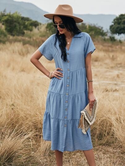 SHEIN Maternity Button Front Ruffle Hem Shirt Dress