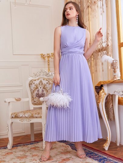 SHEIN Modely Cut Out Tie Back Pleated Hem Dress