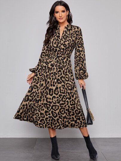 SHEIN Modely leopard Print Belted Dress