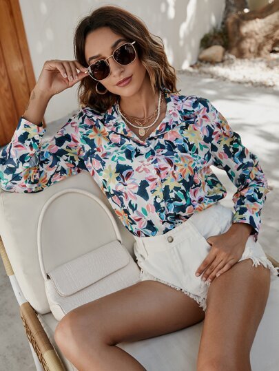 SHEIN Multicolored Vacay Long Sleeve Shirt