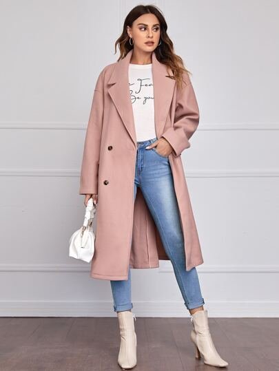 SHEIN Notch Collar Flap Detail Split Hem Overcoat