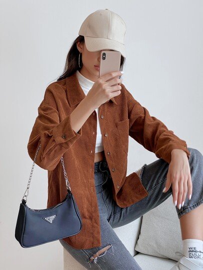 SHEIN Oversize Loose Casual Corduroy Shirt