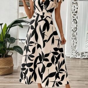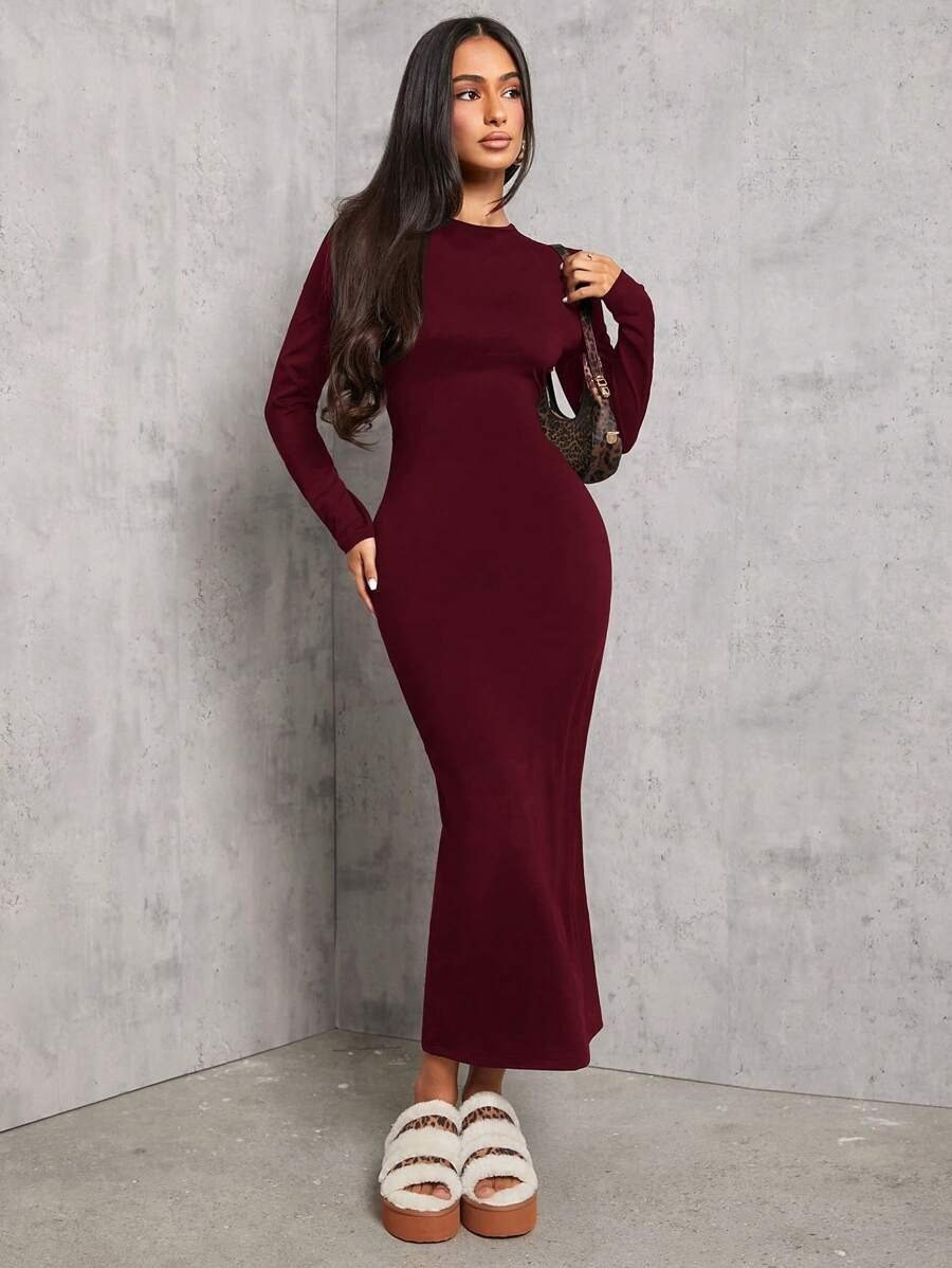 SHEIN PETITE Solid Color Pleated Waist Black Long Sleeve Dress