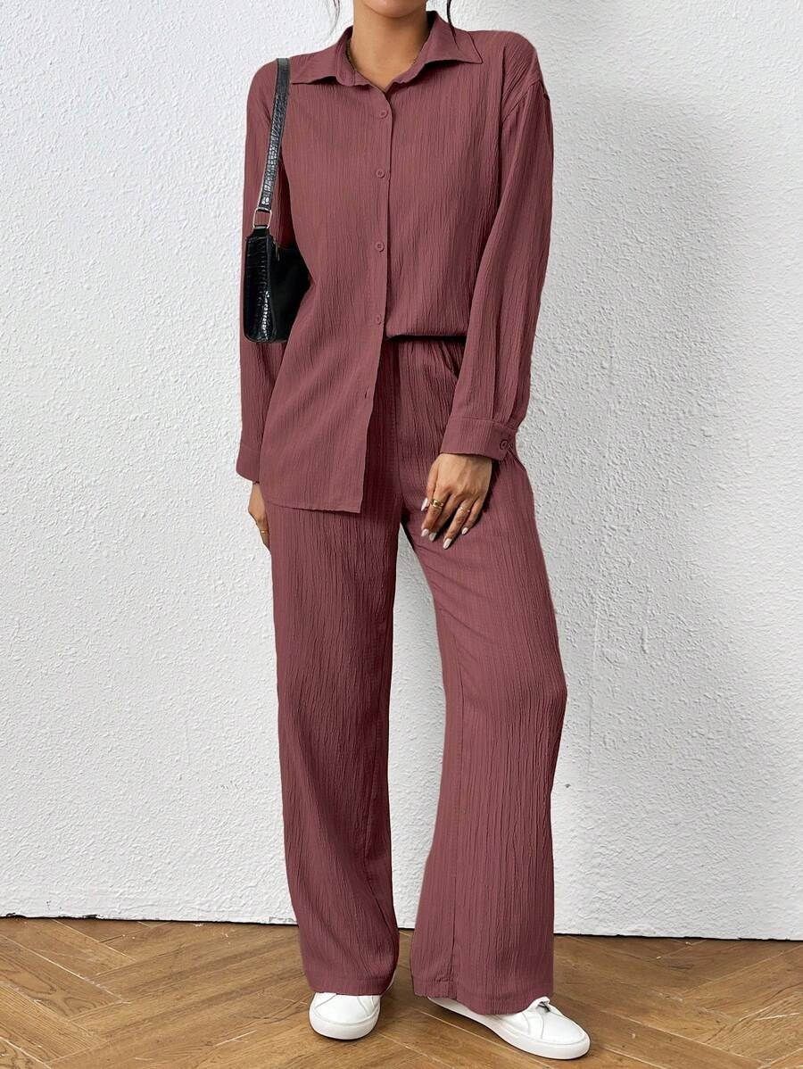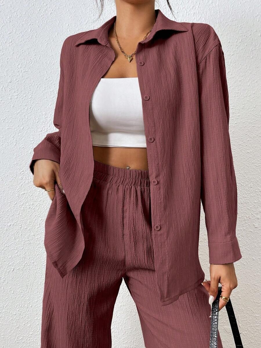 SHEIN PETITE Women’s 2 Pieces Set Solid Color Long Sleeve Shirt And Pants