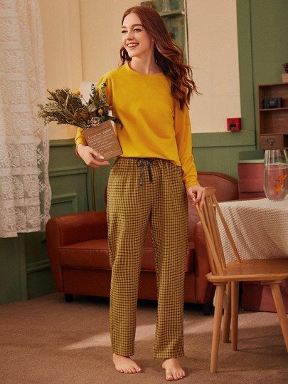 SHEIN Plaid Long Sleeve PJ Set