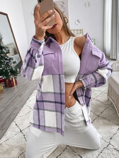 Be the first to review “SHEIN Plaid Panel Button Up Trucker Coat”