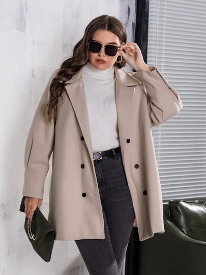 SHEIN Plus Raglan Sleeve Double Breasted Overcoat