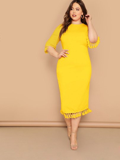 SHEIN Plus Size High Neck Half Sleeves Bodycon Dress