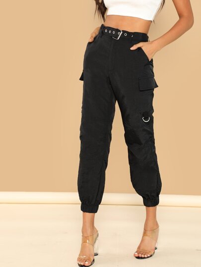 SheIn Pocket Patched Elastic Hem Pants