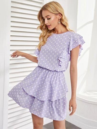 SHEIN Polka Dot Round Neck Short Sleeve Ruffle Hem Dress