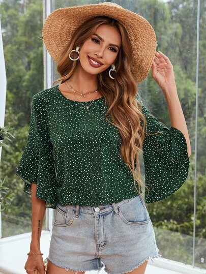 SHEIN Polka Dot Short Ruffle Sleeve Blouse