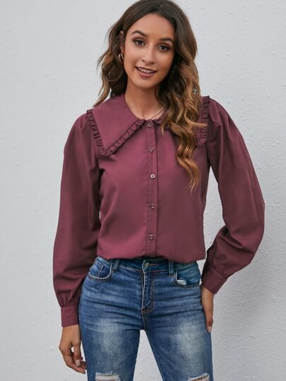 SHEIN Priv? Statement Collar Full Sleeve Blouse