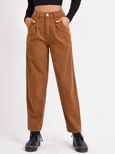 SHEIN Slant Pocket Fold Pleated Corduroy Straight Leg Pants