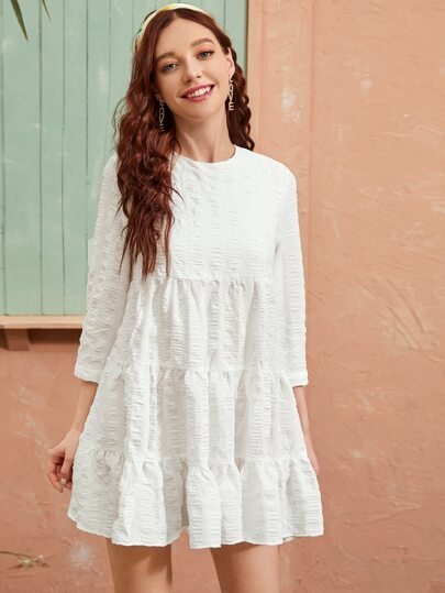 SHEIN Solid Layered Ruffle Hem Mini Smock Dress