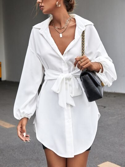 SHEIN Solid Tie Front Drop Shoulder Blouse