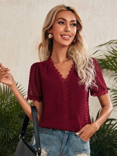 SHEIN Swiss Dot Guipure Lace Insert Top