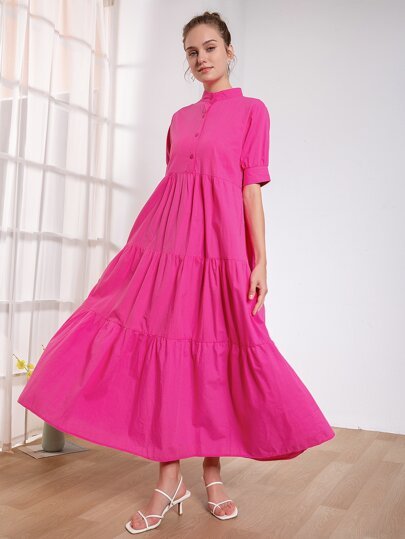 SHEIN Tiered Mock Neck Detail Long Maxi Dress – Pink