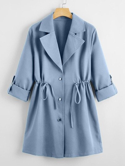 SHEIN Unity Drawstring Waist Button Up Hooded Coat
