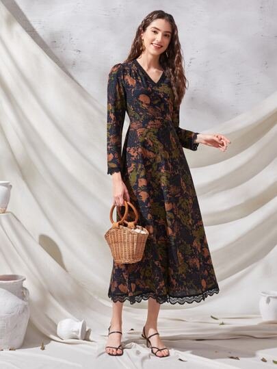 SHEIN V Neck Full Sleeve Long Dress