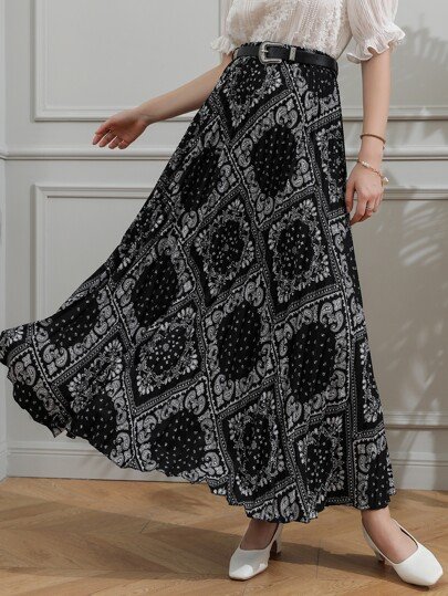 SHEIN Women Paisley Printed Casual Holiday Long Skirt