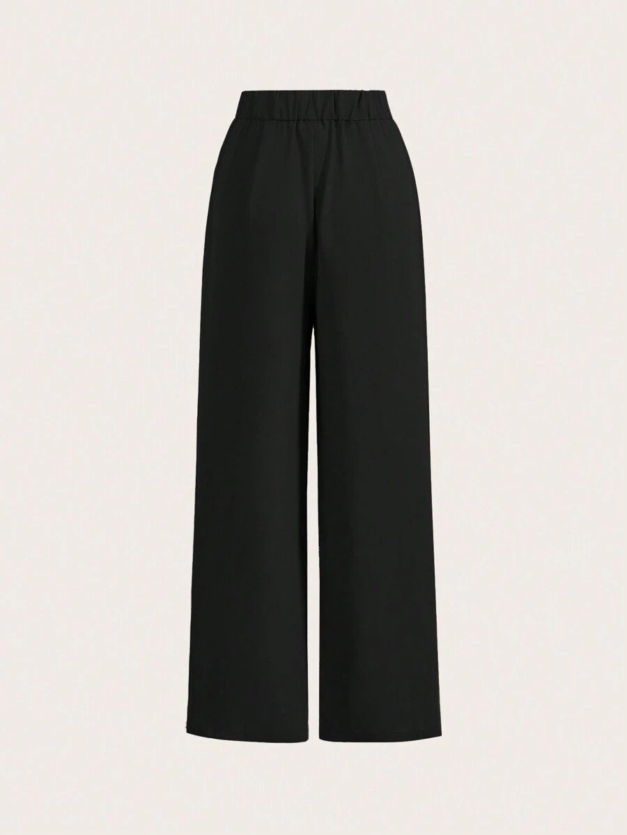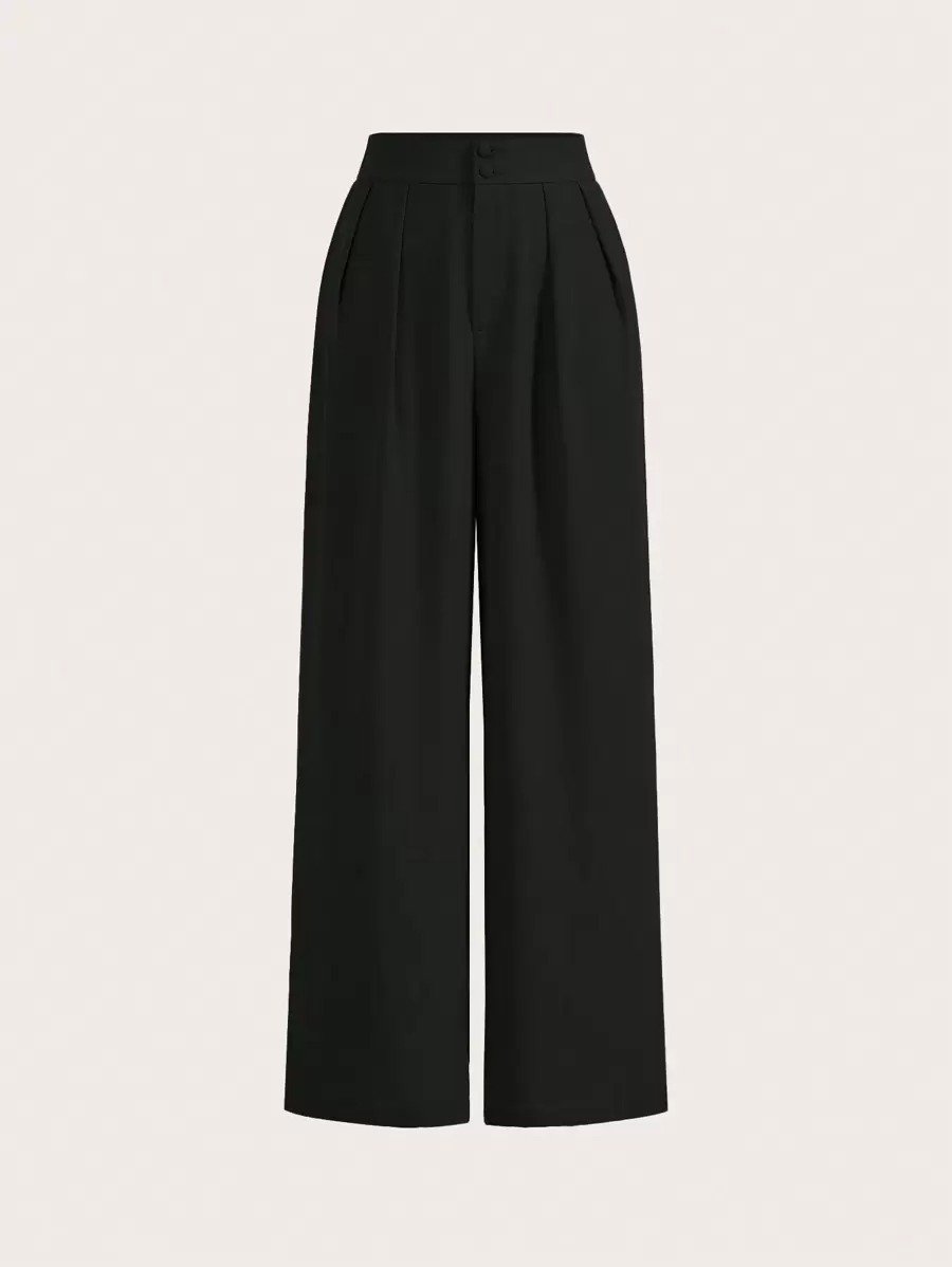 Summer High-Waisted Pants Black Wide Leg Pants High Waist Fold Pleated Wide Leg Pants, Black Pants, Loose Fit, Long Pants