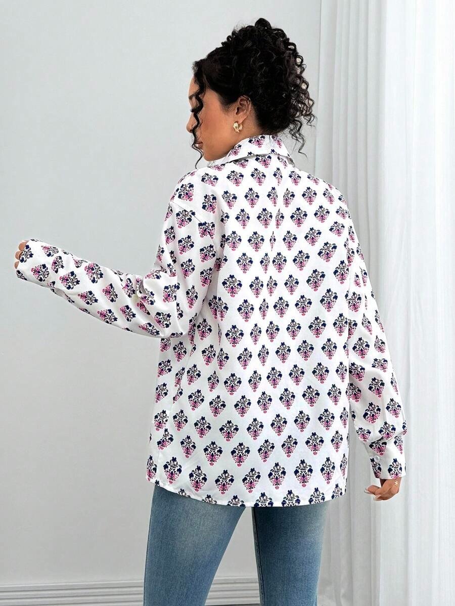 Women All-Over Floral Print Dropped Shoulder Long Sleeve Single-Breasted Pocket Casual Shirt